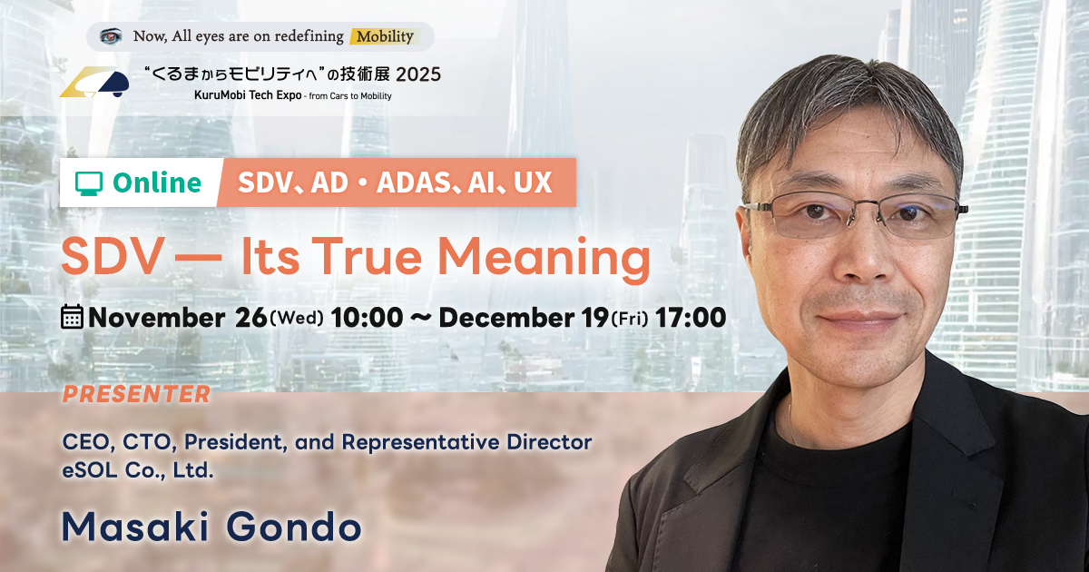 It has been over two years since the term SDV began gaining traction. It has even appeared in mainstream media as “software-defined vehicle.” Yet when asked, “What exactly is an SDV?” even industry insiders often respond vaguely, saying things like, “Well, there are various definitions.” This presentation will discuss the true meaning of SDV and, based on that understanding, explore the essential approaches required.